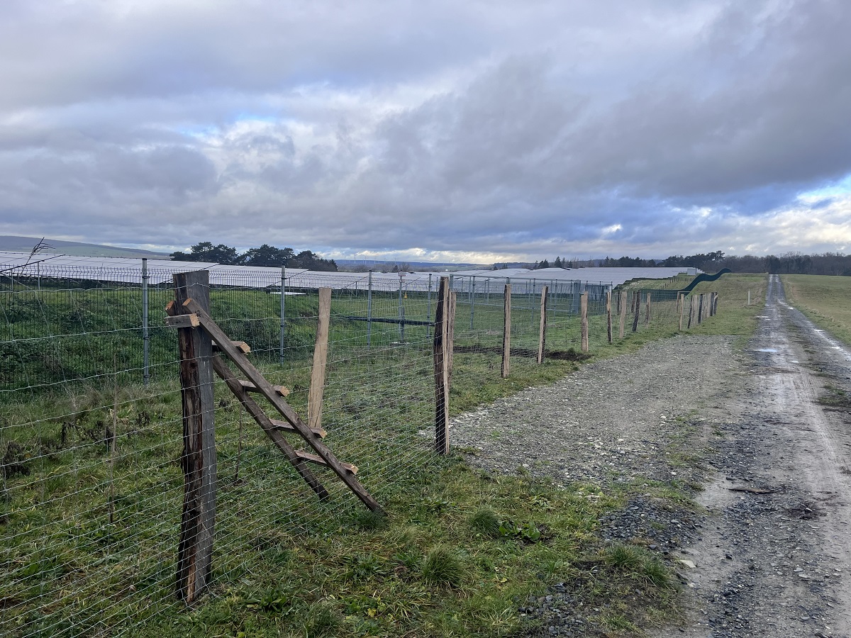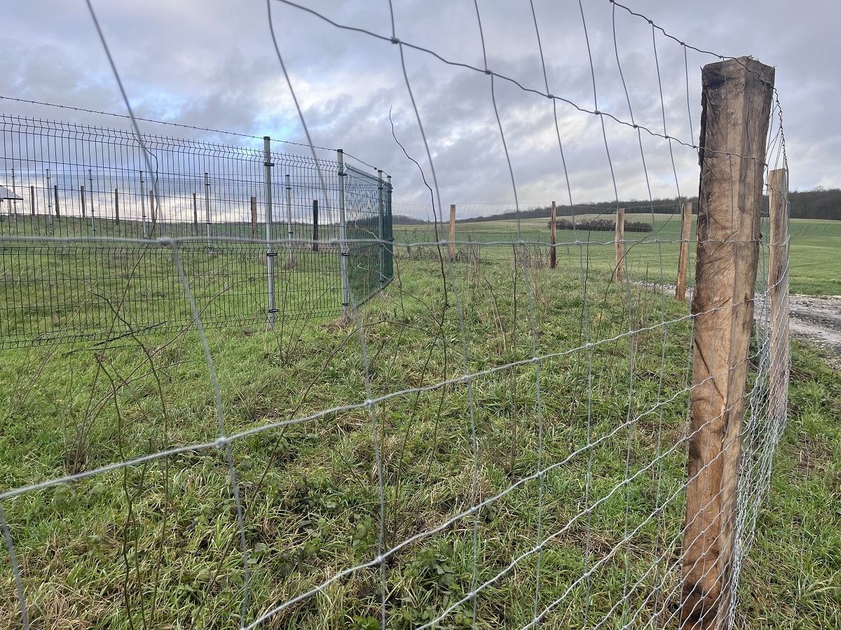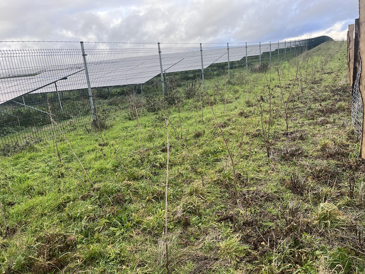 Davor wurde für die ersten Jahre als Verbissschutz ein zweiter Zaun errichtet. An der Südseite und entlang des Feldwegs bis zur Hälfte wurde außerhalb der Solarparkumzäunung gepflanzt. Auf dem weiteren Stück bis zur Nordseite der Anlage befindet sich die Anpflanzung innerhalb der Umzäunung und ist ebenfalls mit einem Verbisszaun vor hungrigen Schafen geschützt.